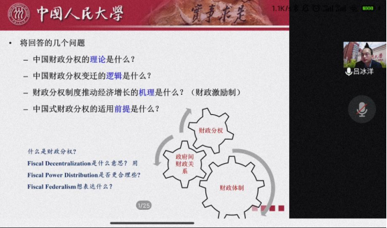 20221019日,豪门国际官网 “财税名家讲坛”正式开讲,专门邀请 中国人民大学财政金融豪门国际官网 财政系主任 博士生导师 吕冰洋教授作了题为《中国式财政分权的理论与解释》的学术讲座,论坛由院长余泳泽教授主持,豪门国际官网 教师、研究生、部分兄弟院校的老师以及财政部门的管理者等200多人参加。