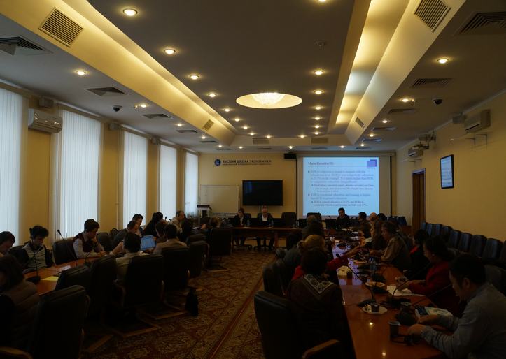 等单位代表组成的中方代表团首先参加了由俄罗斯高等经济大学组织的项目研讨会,中俄代表就中俄职业教育以及农村教育的发展及面临的挑战等进行了热烈认真的研讨。研讨会上,公共财政研究中心主任黄斌副教授做了题为“General education, vocational education and individual income in rural China”的学术报告,田志刚博士做了题为“中国职业教育财政政策:现状、前景及选择”的学术报告。随后,中国代表团赴阿兹纳卡地区参加了“教育促进农村发展国际研讨会”,黄斌主任做了题为“Rural Students’ Intention for the Vocational Secondary Education and its determinants: A survey of three provinces in China”的学术报告。