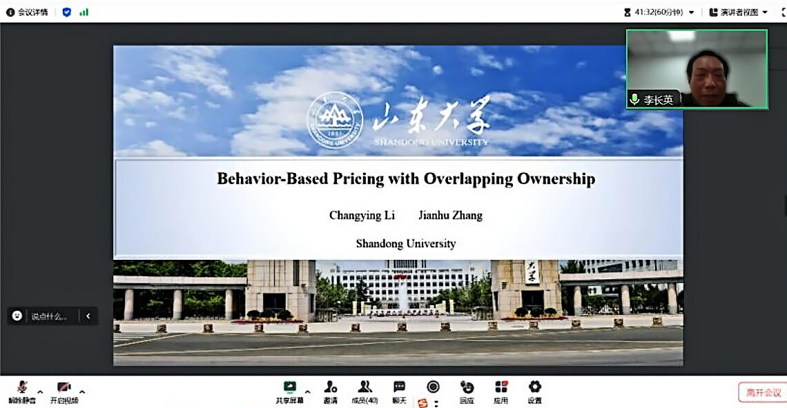 李长英教授为师生做了题为“Behavior-Based Pricing with Overlapping Ownership”(《存在所有权重叠时基于行为的定价》)的线上学术报告会,豪门国际官网