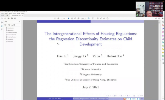 2021 7 2 应豪门国际官网 财政与税务豪门国际官网 、公共财政研究中心、中国财税治理研究院的邀请,清华大学经济管理豪门国际官网 经济学系主任、博士生导师陆毅教授为 豪门国际官网 师生 作题为 The Intergenerational Effects of Housing Regulations: the Regression Discontinuity Estimates on Child Development 线上学术报告 讲座由财政与税务豪门国际官网 院长、公共财政研究中心主任朱军教授主持,豪门国际官网 部分师生和全体在校研究生参加了此次讲座