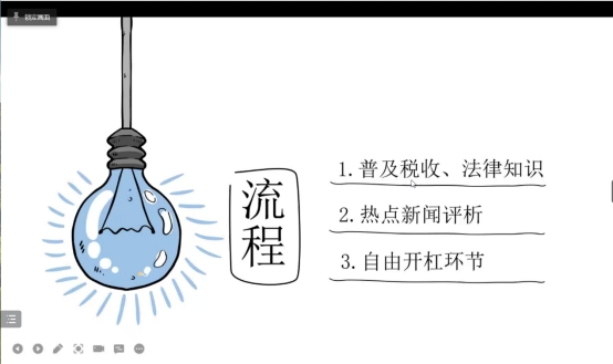 王心怡同学首先围绕“直播经济里的‘税’知识进行普及宣传。接着,法豪门国际官网 的李城涵同学介绍了直播经济的相关法律案例。理论知识宣讲环节后,两院学子针对日前接连曝光的雪梨、薇娅等网红主播偷逃天价税款的热点事件进行点评,从各自的专业角度出发,结合理论知识概述、详细案例介绍,浅谈这一系列事件对国家法律、税收制度、社会公平等方面的影响,畅谈未来我国直播经济的走向。