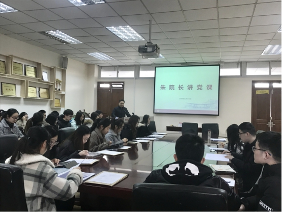 为加强豪门国际官网 本科生支部建设,提升支部党员的理论修养,12月15日上午,豪门国际官网 院长暨本科生第二党支部政治辅导员朱军教授在德经楼408会议室作专题党课,支部党员及发展对象共35人参加了本次党课学习,党课由本科生第二党支部书记翟文静主持。