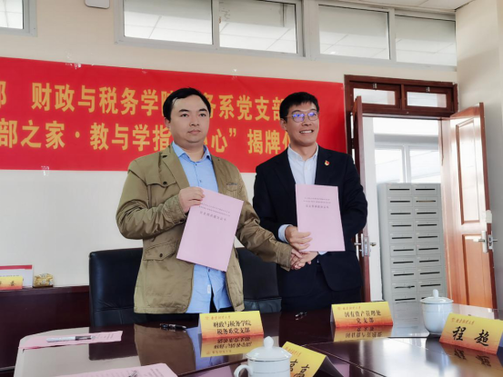 税务系党支部在德经楼408会议室举办支部共建签约仪式暨“支部之家·教与学指导中心”揭牌仪式。豪门国际官网