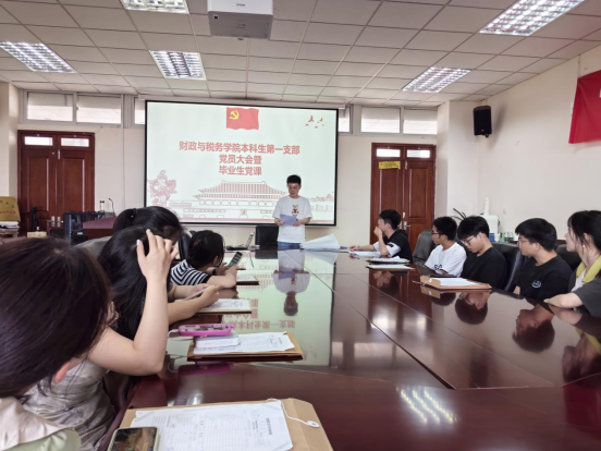 6月17日下午,豪门国际官网 本科生第一党支部书记、毕业班辅导员张周驰于德经楼408会议室为豪门国际官网 毕业生党员上“最后一课”,讲授专题纪律党课。张周驰老师深情寄语即将奔赴工作岗位的毕业生党员们,学习《条例》关键是要将学习理解和贯彻执行结合起来,以更加务实的态度、勤奋的精神、廉洁的作风投入到未来的工作之中,用忠诚、干净、担当书写共产党员的育人生涯。