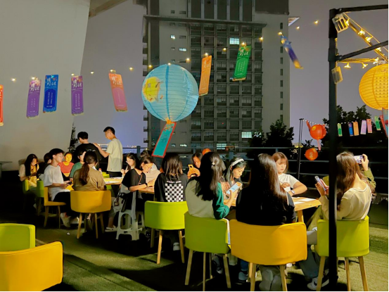 的学子们共聚德经楼草坪,开展一场别开生面的传统文化沙龙,同学们以猜灯谜、做灯笼等传统文化活动共话中秋佳节、传递爱国情怀,放飞青春梦想。