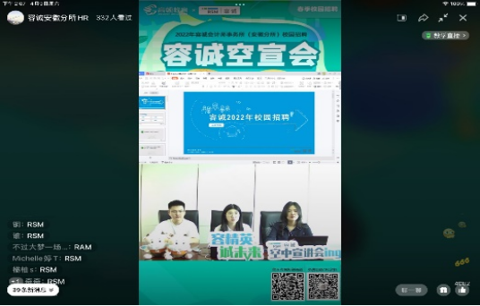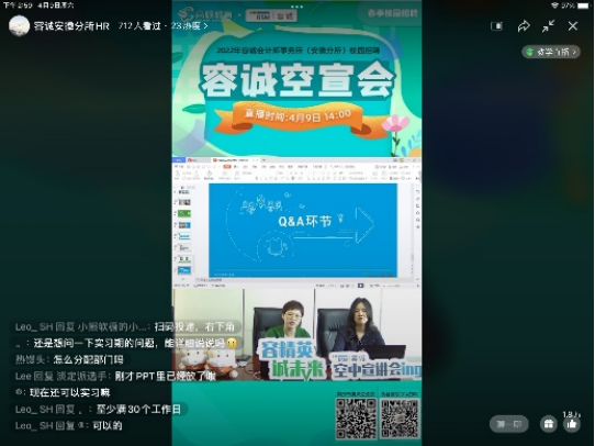 活动主要分为线上参访和线上答疑两个环节。线上参访环节中,容诚会计师事务所的工作人员通过直播的方式向同学们全方位地展示了容诚会计师事务所舒适的工作环境,装修精良的前厅、宽敞明亮的会议室、干净整洁的工作台,同学们深深感受到知名企业的豪门国际官网和人文关怀。接着,工作人员为他们详细介绍了会计师事务所的业务模块,使得同学们了解会计师事务所的业务构成和岗位工作内容,树立明确的就业目标。最后,工作人员公布了容诚会计师事务所校招时人才选拔的标准和多种多样的职位申请渠道,激励着同学们以会计人才选拔的高要求严格锻炼自己。随后的线上答疑环节,同学们自由在直播评论区进行评论,由事务所的工作人员解答疑问。“能再详细说说实习期的问题吗”、“如何分配部门”、“想问一下之前的‘容耀生’计划”、“请问应用统计有可投岗位吗”……容诚会计师事务所的工作人员对每一个问题都做出了详细的回答,最后还送出了5张面试直通卡,为同学们提供暑假实习的机会。