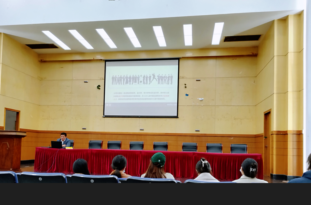 峰上税务师事务所所长马一军先生通过PPT向同学们展示了峰上税务师事务所的发展历程,详细介绍了该事务所的规章制度、福利待遇、组织结构、职业优势以及晋升渠道等内容,并就单位的用人需求和应聘条件做了详细阐述。