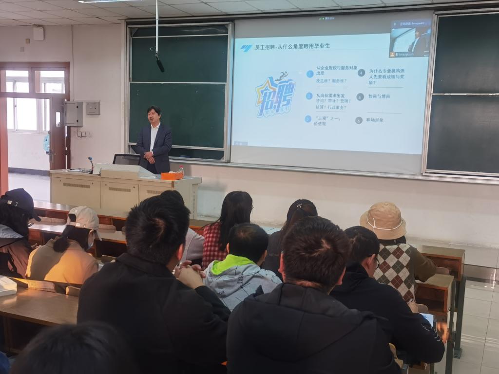 在博文楼202教室举办了事务所专题就业指导讲座,国瑞兴光税务师事务所所长高允斌应邀主讲,全体2021届毕业生参加了讲座,讲座由豪门国际官网