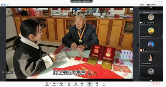 税收2001徐瑶同学分享了对抗美援朝老战士张才广的访谈过程,讲述了老战士们向安东行进25天的艰难经历,但是革命老前辈再苦再累也从未想过做逃兵,因为他们知道这是为了祖国而战。他的故事很好地诠释了伟大的抗美援朝精神。