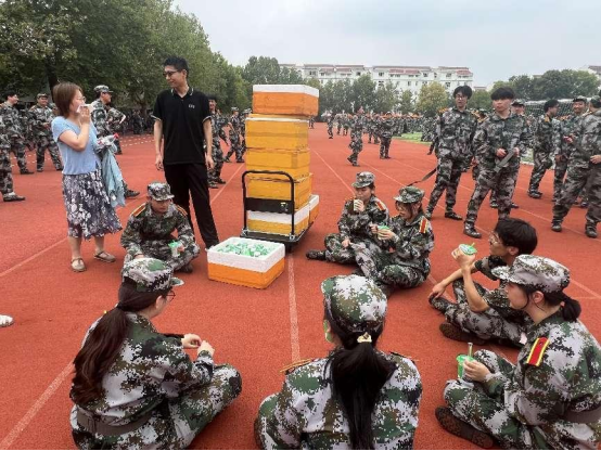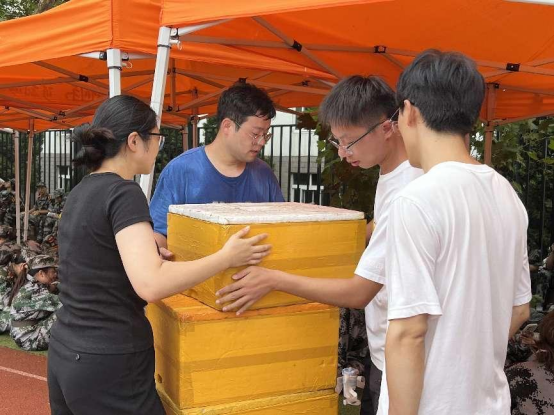 老师们也来到军训现场为学生们送来了丝丝凉气的绿豆冰沙,在炎热的夏日驱赶着灼人的暑气,和同学们进行一场“双向奔赴”。操场中弥漫着绿豆清香,每一口都是满满的甜蜜和凉爽,仿佛能把所有的疲惫和炎热都一扫而空。在休息时间,同学们无拘无束的坐在草地中,享受着冰凉的绿豆沙,分享彼此的见闻,微风抚走脸上的汗珠,青春的笑颜比骄阳还耀眼。