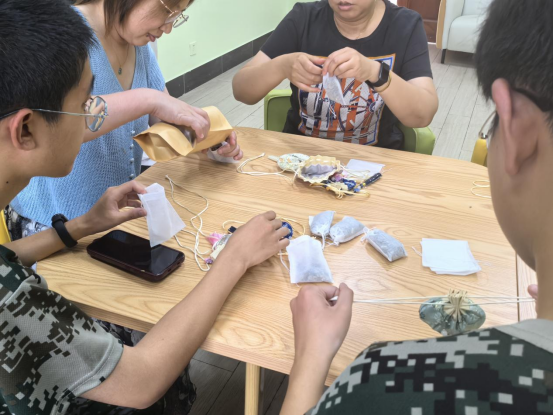 “05后”学子为每位老师精心准备了一份特别的礼物——水杯和香囊,并邀请到了几位老师和学子们一起制作香囊,感受手工制作的魅力。