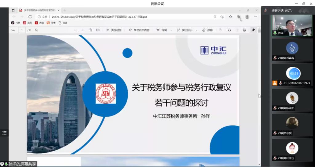 师生做了题为《关于税务师参与税务行政复议若干问题的探讨》的线上学术讲座。
