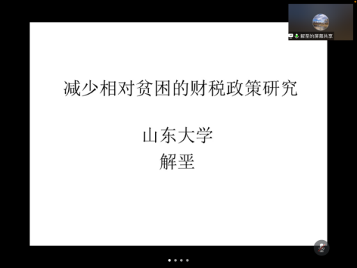 解垩教授首先对中国的贫困问题进行了分析;接着从“贫困的测度与成因”、“财税政策的减贫机制”、“财税政策的减贫效应”、“贫困的识别、瞄准及减贫效率”四个方面为我们详细讲述了相对贫困问题的研究现状梳理与综述,并对已有文献进行了分析评价,进一步探讨了关于解决相对贫困问题的发展空间;其次,介绍了项目的总统框架和预期目标,包括子课题结构及其主要内容、研究思路和研究方法等;最后,解垩教授从五个方面讲述了该项目的重点难点和创新之处,并与我们分享了写作技巧及项目申报的相关经验。
