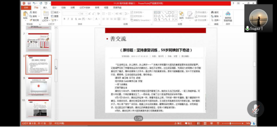 舒越老师结合南京突发的疫情为大家展示了几篇新闻稿件,引出讲座主题——如何挖掘新闻亮点。她认为,写好一篇新闻稿需要“多观察”,并举例南京鼓楼广场卖报21年的老太太的新闻故事。其次写好一篇新闻稿还需要大家“善交流”,通过与当事人反复沟通,挖掘故事,使主题清晰。同时特别强调了新闻要“写人话”,并引用了一篇全是化学专业术语的新闻作为反面例子来教导大家新闻写作通俗易懂的重要性。之后,她教导大家要学会抓细节、选角度,沉下心来,多读多写才能出好新闻。