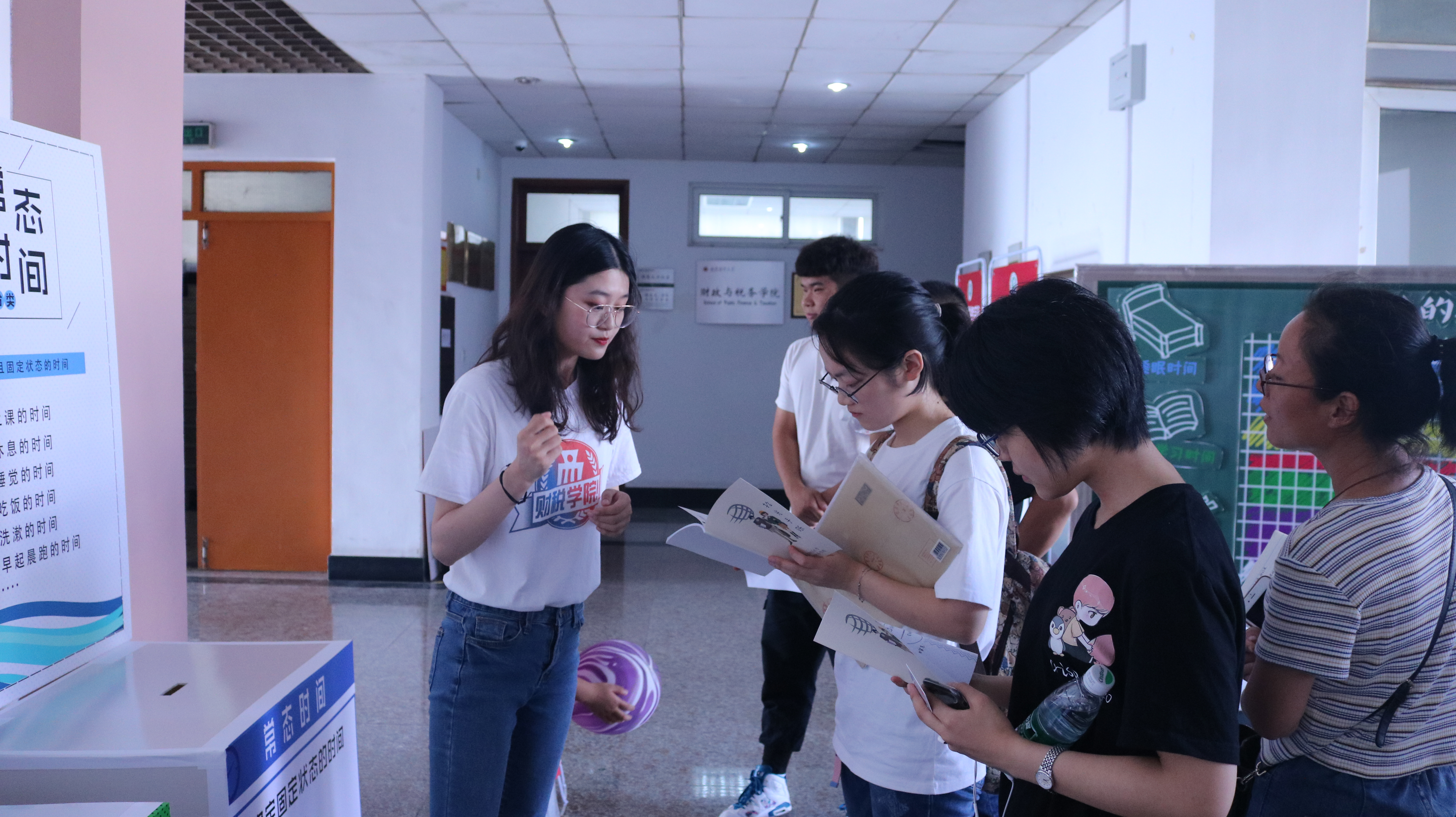 推出了时间规划分类盒子,把时间分为动态时间,黄金时间、碎片时间和常态时间。新生亲自将手中写有各类时间的小表盘投进四个盒子里,完成时间规划的初步分类。同时,新生还领到课后作业《拾光手账》,通过新颖的时间税,每天用应纳税额和实纳税额来评价每一天任务的完成度。用一种“纳税人”的身份,为自己的大学四年负责,做好规划。来自江苏连云港的新生同学解天宇说:“进入大学 ,这是我第一次以这种新颖的方式上课 ,我深感大学时间规划的重要性,相信自己会在今后的大学四年里珍惜时间,不负韶华。”