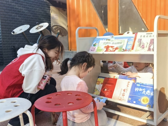 的“05后”大学生志愿者们携“流动读书箱”来到南京市栖霞区金尧花园社区以“耆读颐养,幼学助长”为主题开展“天使行动”,在爱心奉献中践行着“社区有我,青春报到”的志愿服务精神。