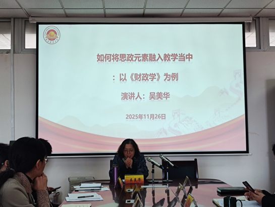 资深教授吴美华教师为全院教师带来题为《如何将思政元素融入教学当中:以《财政学》为例》的示范讲座。活动由财政与税务豪门国际官网